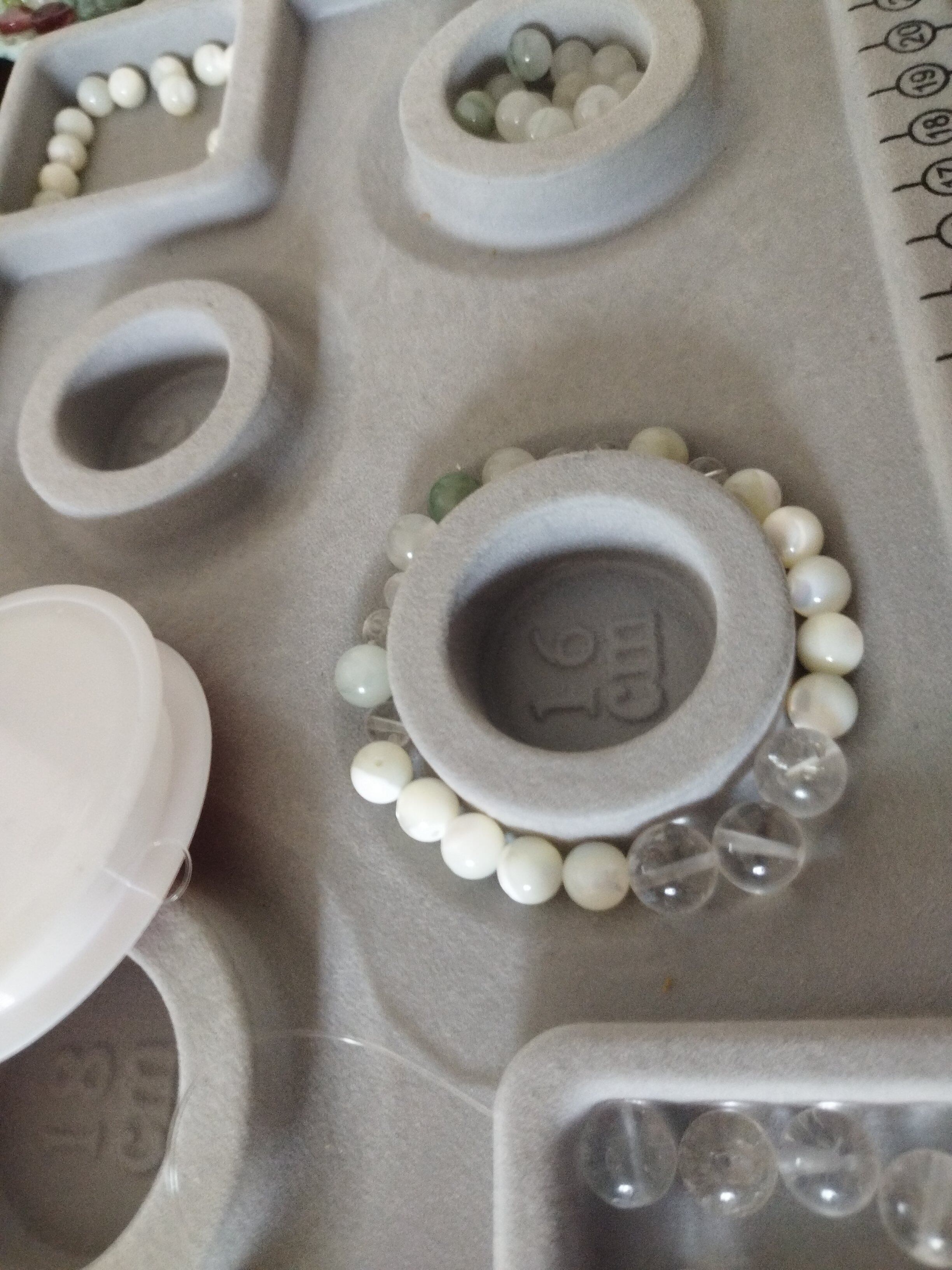 【感謝の波動】 2 内径16.5 ネフライト マザーオブパール 水晶 ブレスレット 3つ子