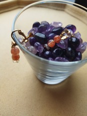 太陽の輝きを身にまとって。サンストーンとシトリンが輝くアレルギーフリーイヤリング。太陽の光を浴びるような輝きを放つサンストーンと、金色のような輝きを持つシトリンが、耳元で陽気な気分を演出します。